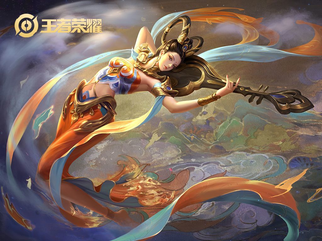 相信很多玩家都见识过杨玉环---遇见飞天的皮肤。这个皮肤美得令人窒息,婀娜的身姿,典雅的琵琶,头发采用古代女性编织头发样式的一种---高髻;妆容上是唐朝女子比较喜欢的红粉妆,画眉妆容;主题背景色是来自两个不同莫高窟的主调色彩橙色与蓝色;主要用于佛像的胸前火焰纹;首饰是与莫高窟壁画的菩萨类似的金玉雕刻镶嵌而成;披肩是模仿了三个莫高窟的人物的造型设计而成的;加上舞动效果的飘带……多种敦煌元素的结合,构成了此套“只应天上有,人间哪得几回见”的装扮。