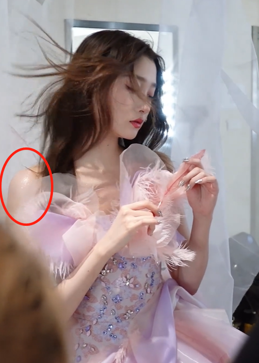 早上工作室晒出的关晓彤摄影棚工作的系列花絮视频,从生图中能够清楚地看到关晓彤的皮肤上甚至还涂满了亮粉,皮肤在灯光下闪闪发光,看起来相当的耀眼。