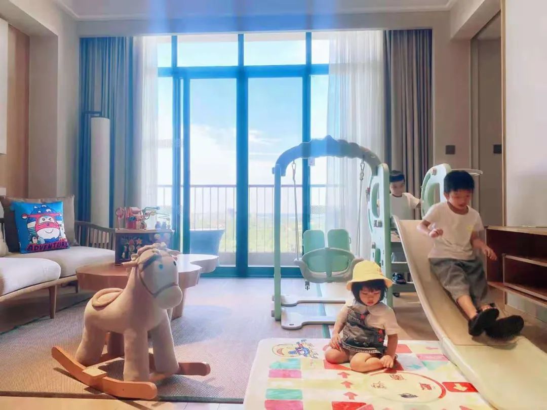 图 | 三个孩子在拍摄的酒店里玩耍