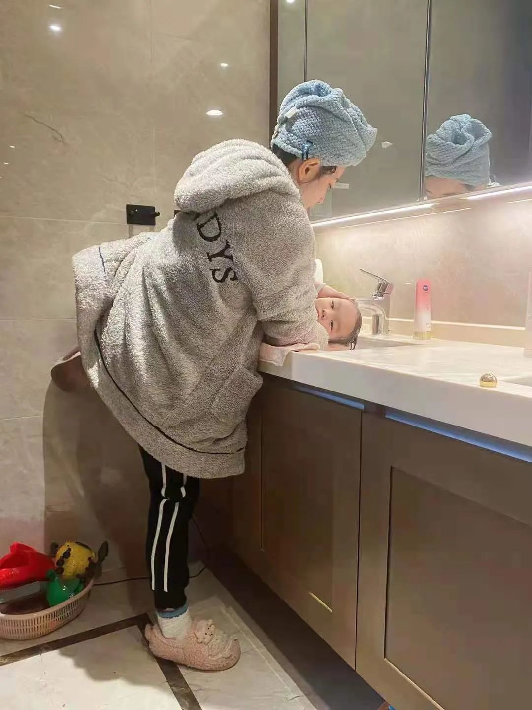 图 | 春晓独自给孩子洗澡