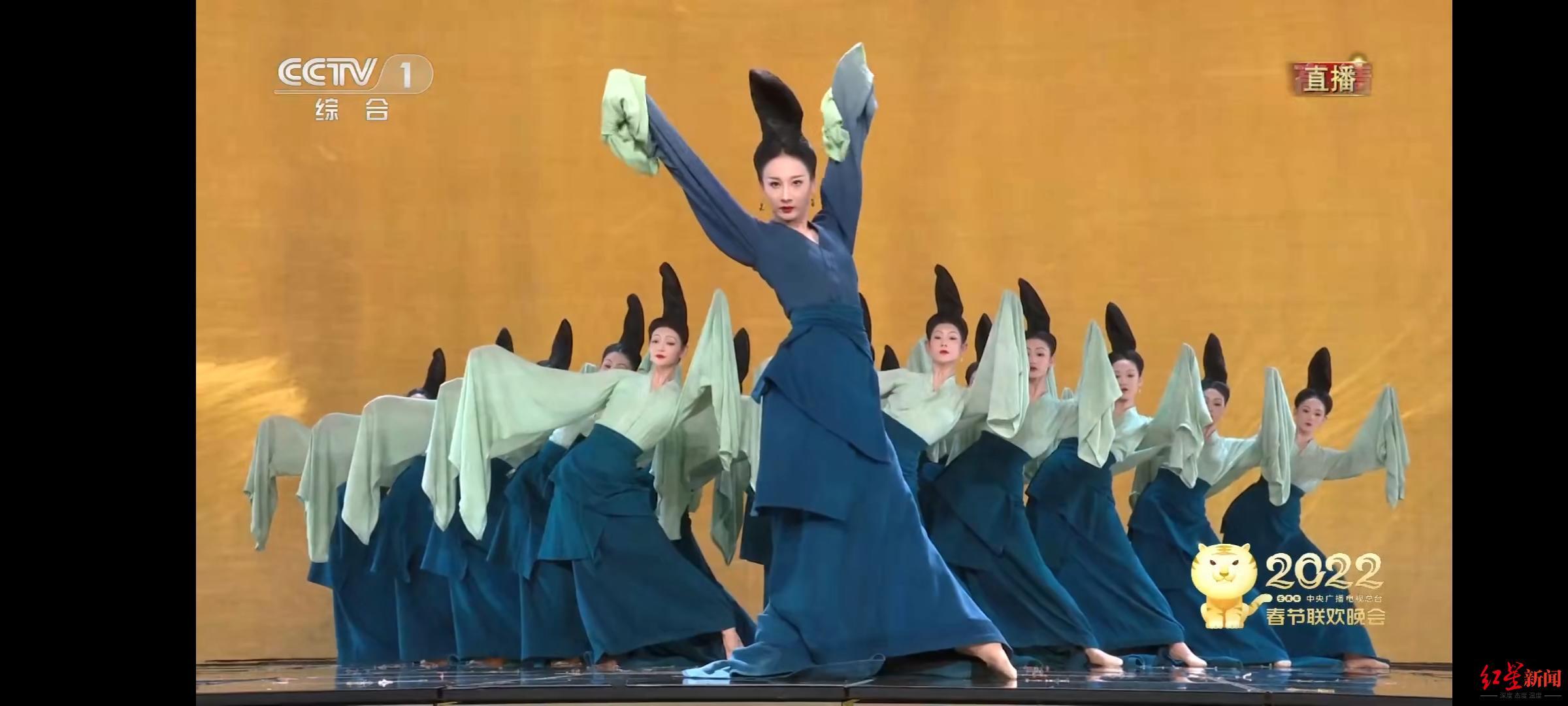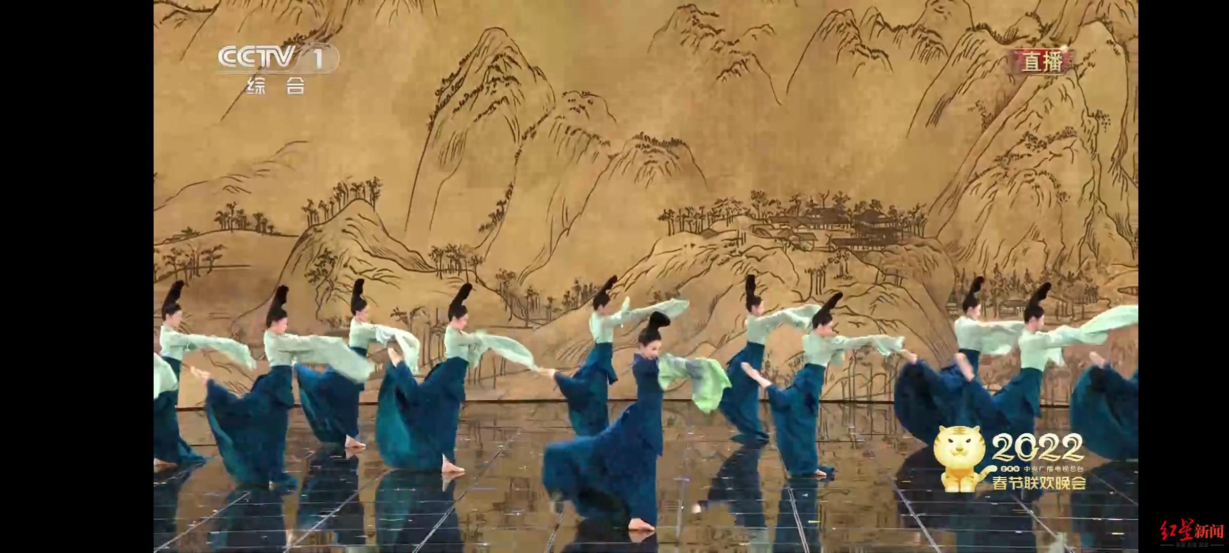 画中青峰叠嶂,绿水隐现;舞者眉眼锋利,绛唇高髻。利落甩袖,隐入画中……今(31日)晚的央视春晚上,以传世名画《千里江山图》为灵感创作的舞蹈诗剧《只此青绿》获得了不少点赞。该节目由中国东方演艺集团表演,春晚副总导演邹为说,如今国风、国潮深受年轻人喜爱,将《只此青绿》搬上春晚舞台也是希望能吸引更多的年轻人,并通过舞蹈作品传递中国优秀的传统文化。