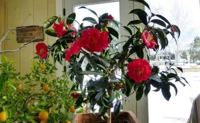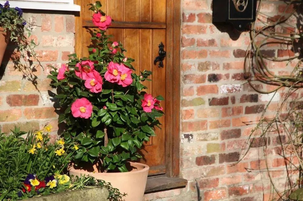 刚买回家里带盆带土的盆栽茶花,要避免换盆,一旦换盆就会伤根,也会引起花苞掉落。