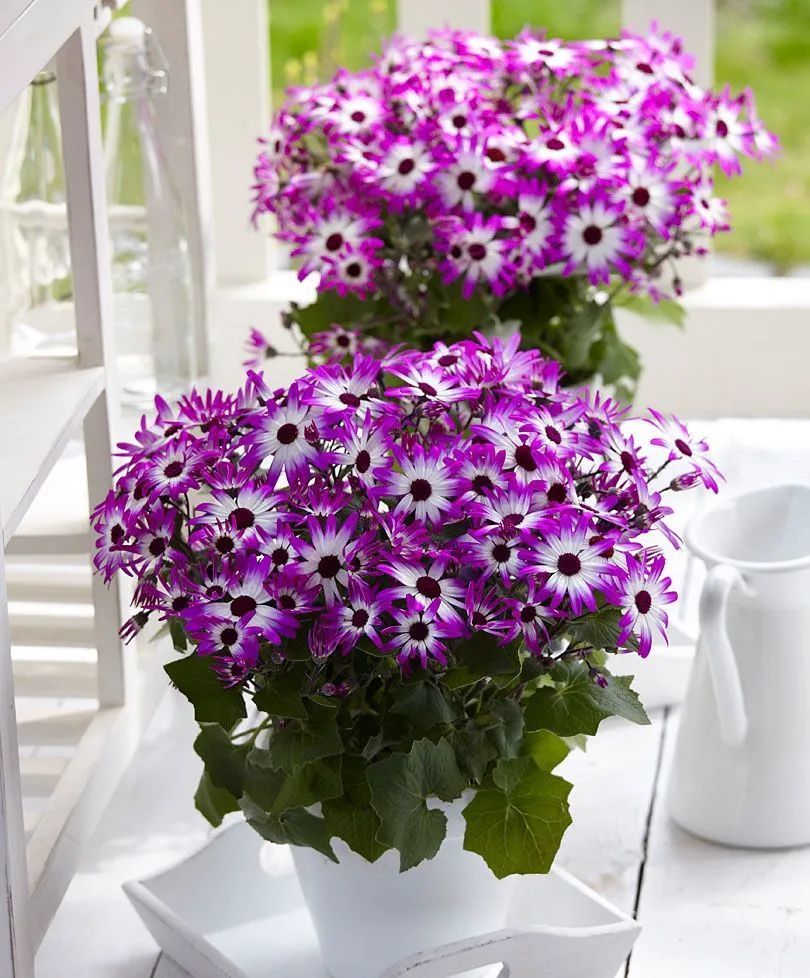瓜叶菊的叶子就看起来像普通的瓜果一般,但是花朵却是极其灿烂的,每年的冬春时节都可以保持灿烂的开花状态,不过它是属于一年生花卉,就是每年都要重新购买,但是它的花期长,而且花量极多,还是很值得购买的。
