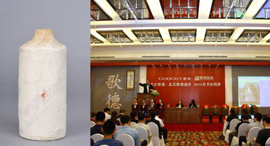 2012年12月3日,一瓶1958年9月22日产的五星牌茅台酒在歌德秋季拍卖会上以207万元成交,这瓶茅台采用外销瓶体,内销封口及内销商标的内销茅台酒,是茅台酒生产历史上,极为少见的品类,更为弥足珍贵的是,此酒是迄今为止,拍卖会上出现品相最好的50年代茅台酒。拍卖当天此标的经过近20多轮的叫价,最终以207万的高价成交,一举刷新了单瓶茅台酒的成交纪录,成为陈年茅台专场的单瓶冠军。