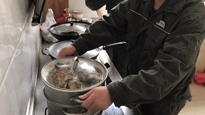回到班组已是下午1点多。师傅们放下工具,轮流来到二楼厨房,拿起锅铲又在厨房里忙碌起来。不一会儿,一道道香气四溢的热菜“火热出炉”。待外出抢修的师傅们陆续返回,班组的“年夜饭”正式开始。