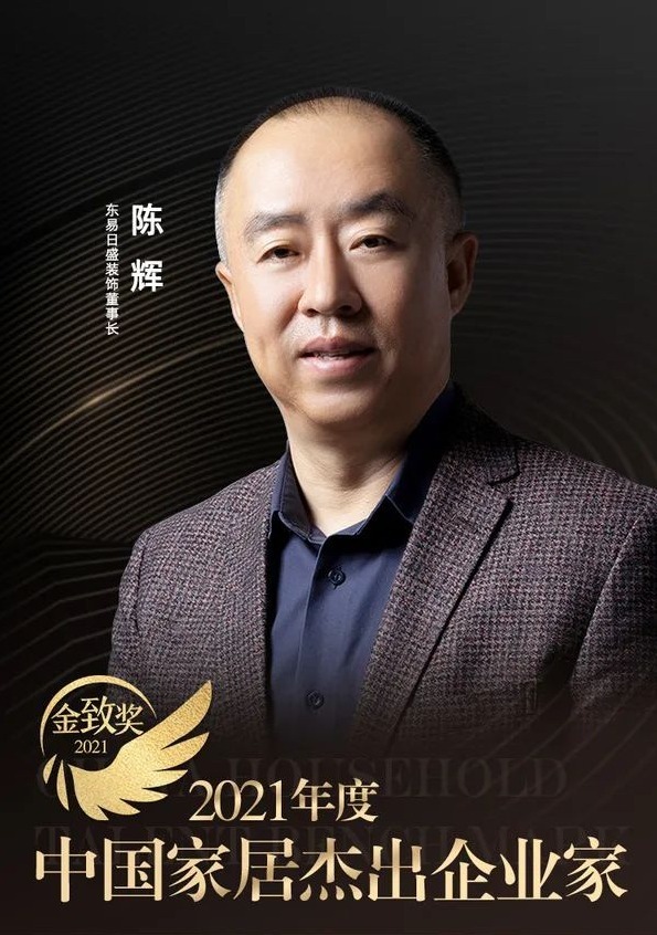 2021中国家居「金致奖」评选在盛典隆重揭晓!东易日盛装饰董事长陈辉荣获「2021中国家居杰出企业家」称号。
