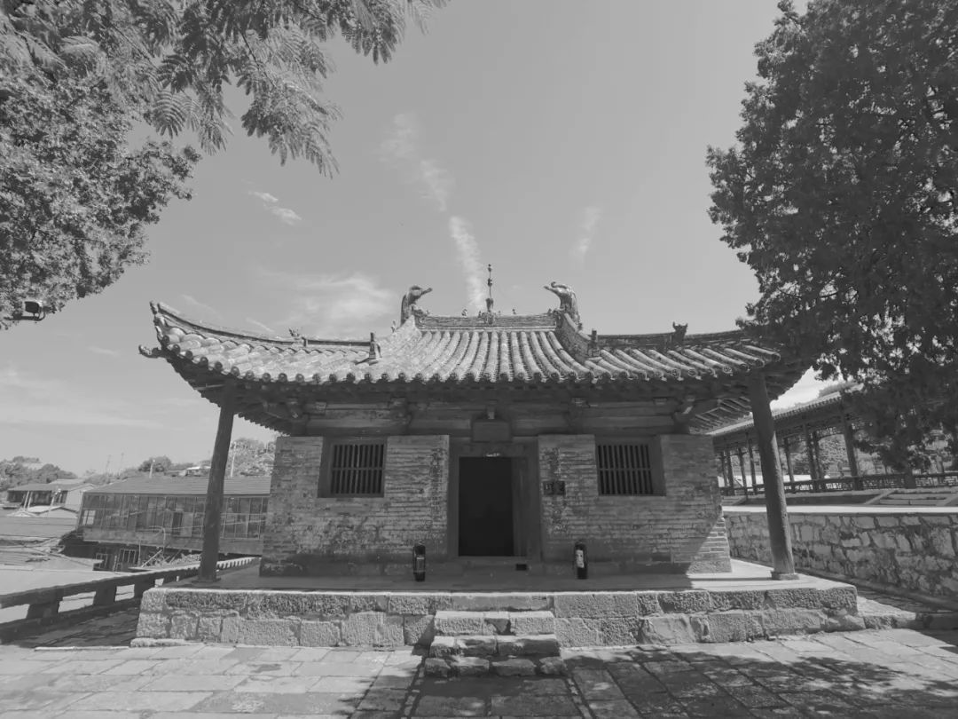 而应感庙,就在五龙山上。我们穿过田地,跨过小溪,再攀爬一段山谷间的小路,便到了崖口。这是一座百姓求雨的龙王庙,如今已是空空荡荡。正殿为五间六椽悬山顶,懂建筑的专家曾盛赞过这里的柱头铺作,是一跳精美的大插昂,特别是廊下的那座宣和年款的仁泽侯碑,说明眼前的建筑就是真真切切的北宋遗存!如今,像会仙观和应感庙这样的“国保” (国宝) ,就这样散布在武乡的田野乡间,那曾得到敕封的道观神庙,就隐没于山间疯狂生长的玉米和杏树丛中,不露一点声色,仿佛历史的尘埃。