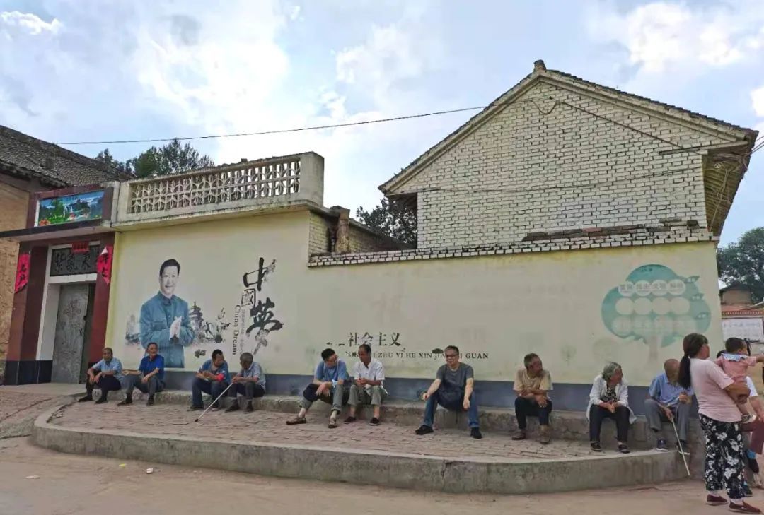 村委会前的广场上,好些人坐在墙根下消暑抽烟。我们也走进去,跟乡亲们并排坐下,递上一支烟,偶尔说上两句话。老乡们还像往常那样打闲,静静地,只有烟雾慢慢升起……