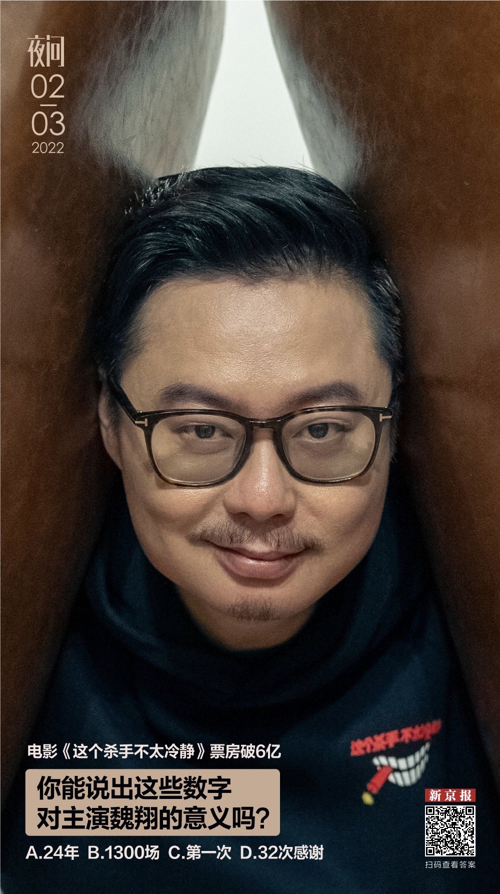 答案:24年是魏翔学表演至今的时间,1300场是他在话剧舞台上完成的场数,第一次是他这次主演电影《这个杀手不太冷静》,这是他第一次饰演男主角。32次感谢则是在新京报专访中他对外界、对朋友表达的谢意次数。