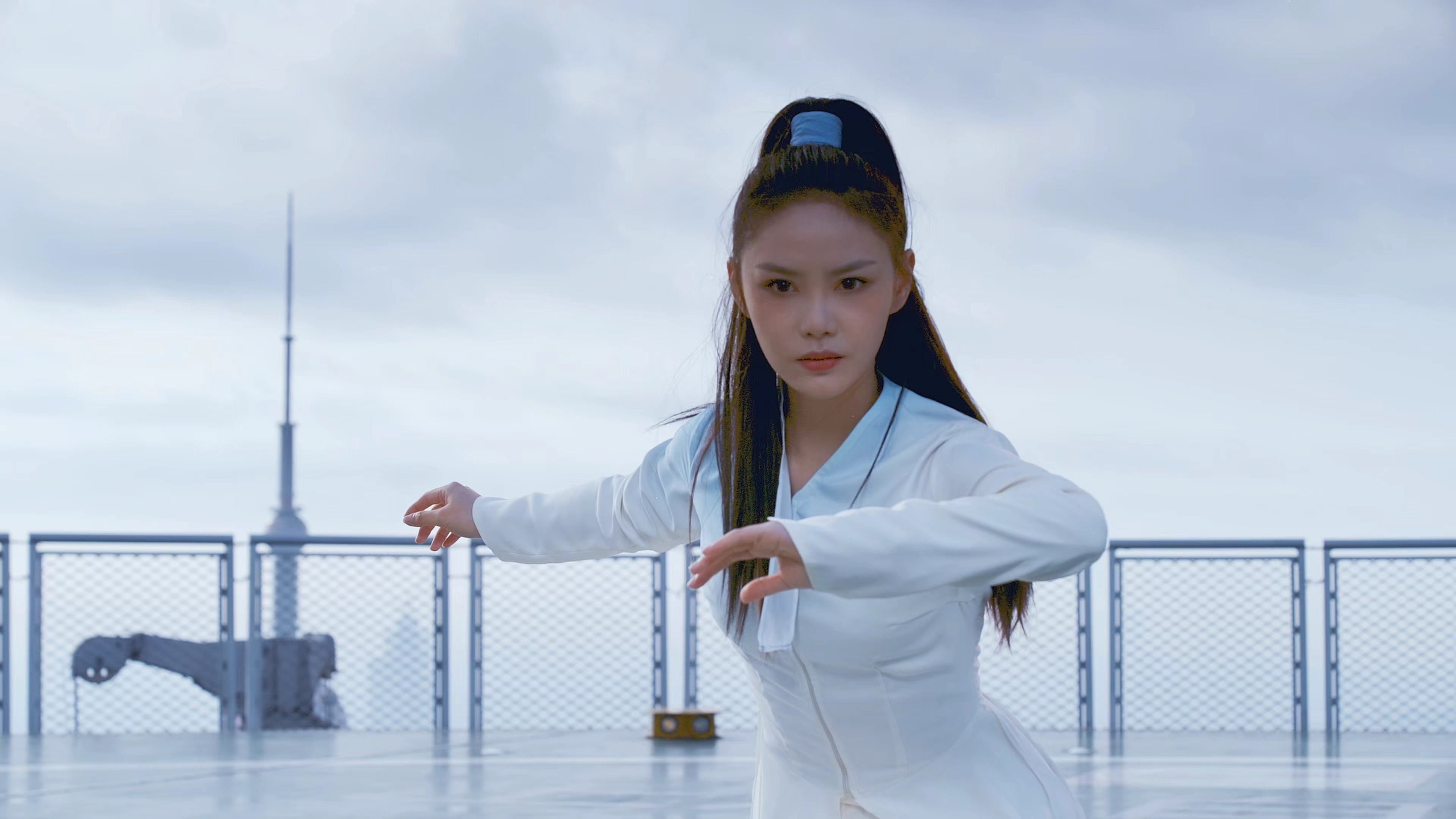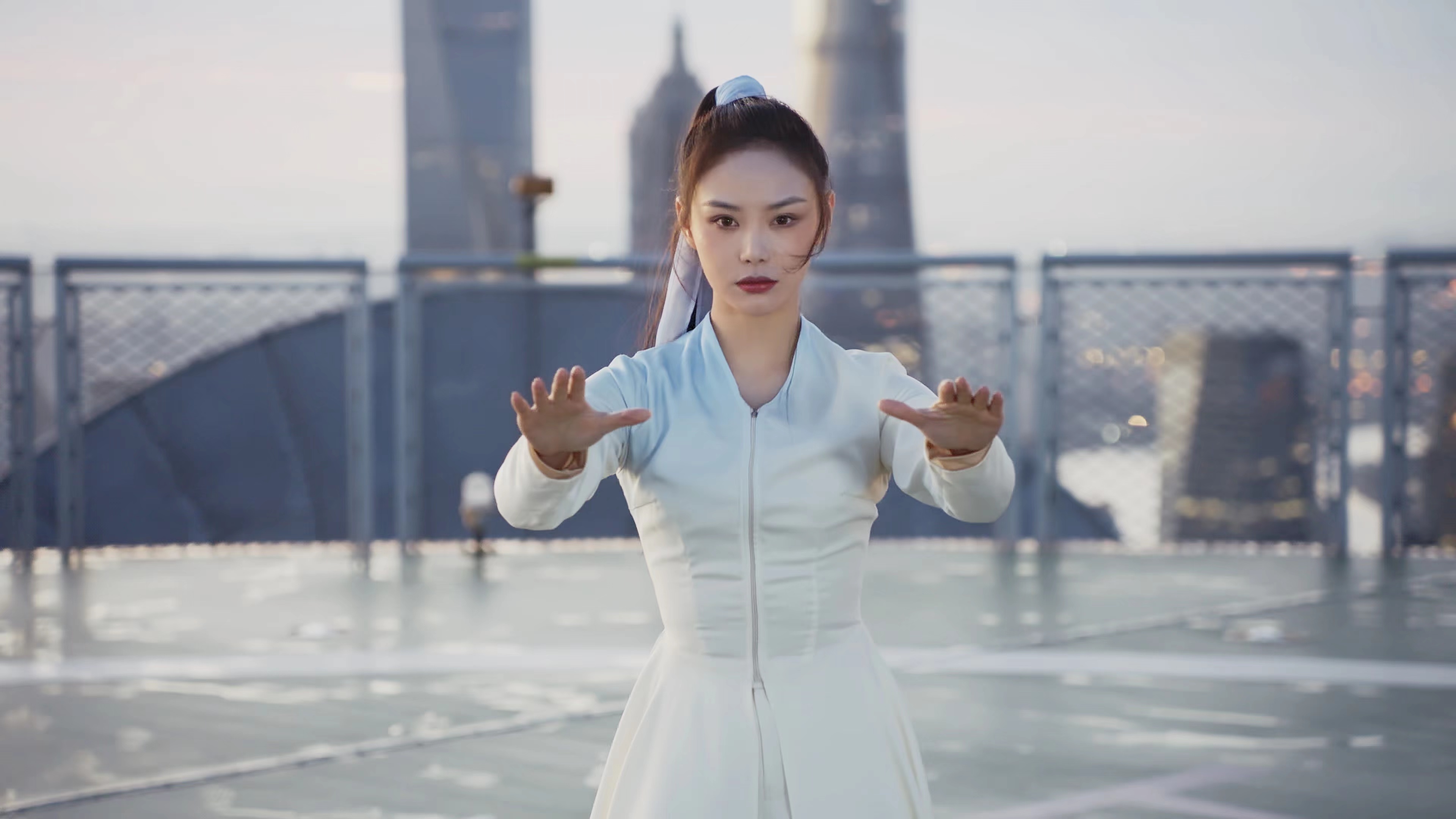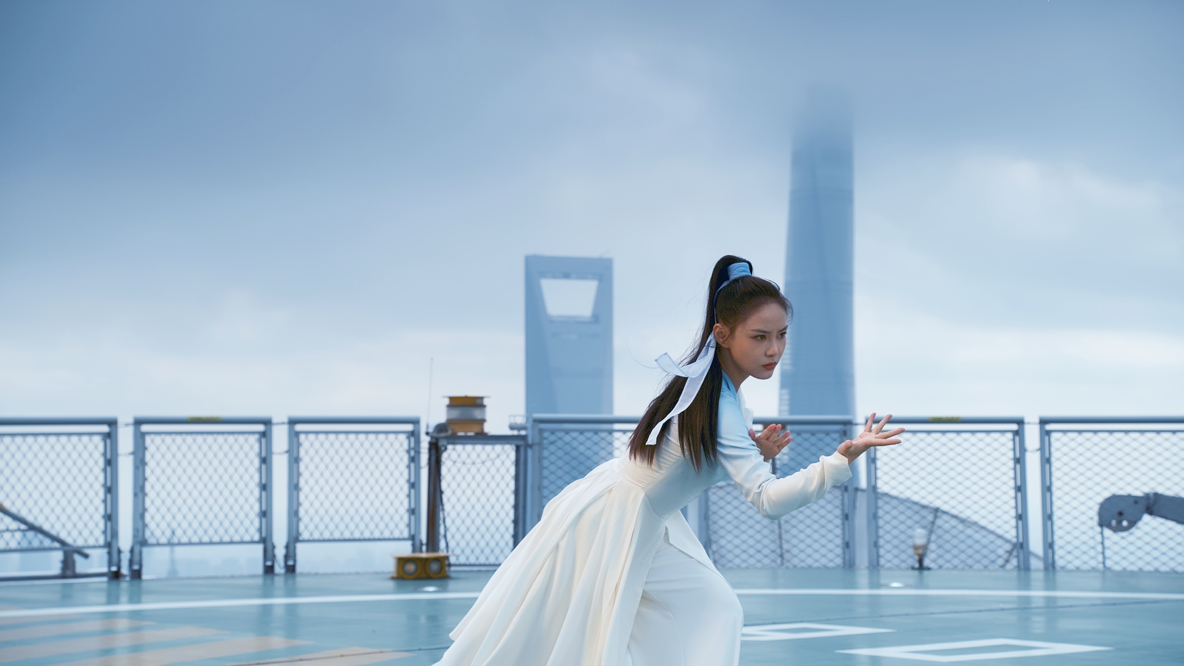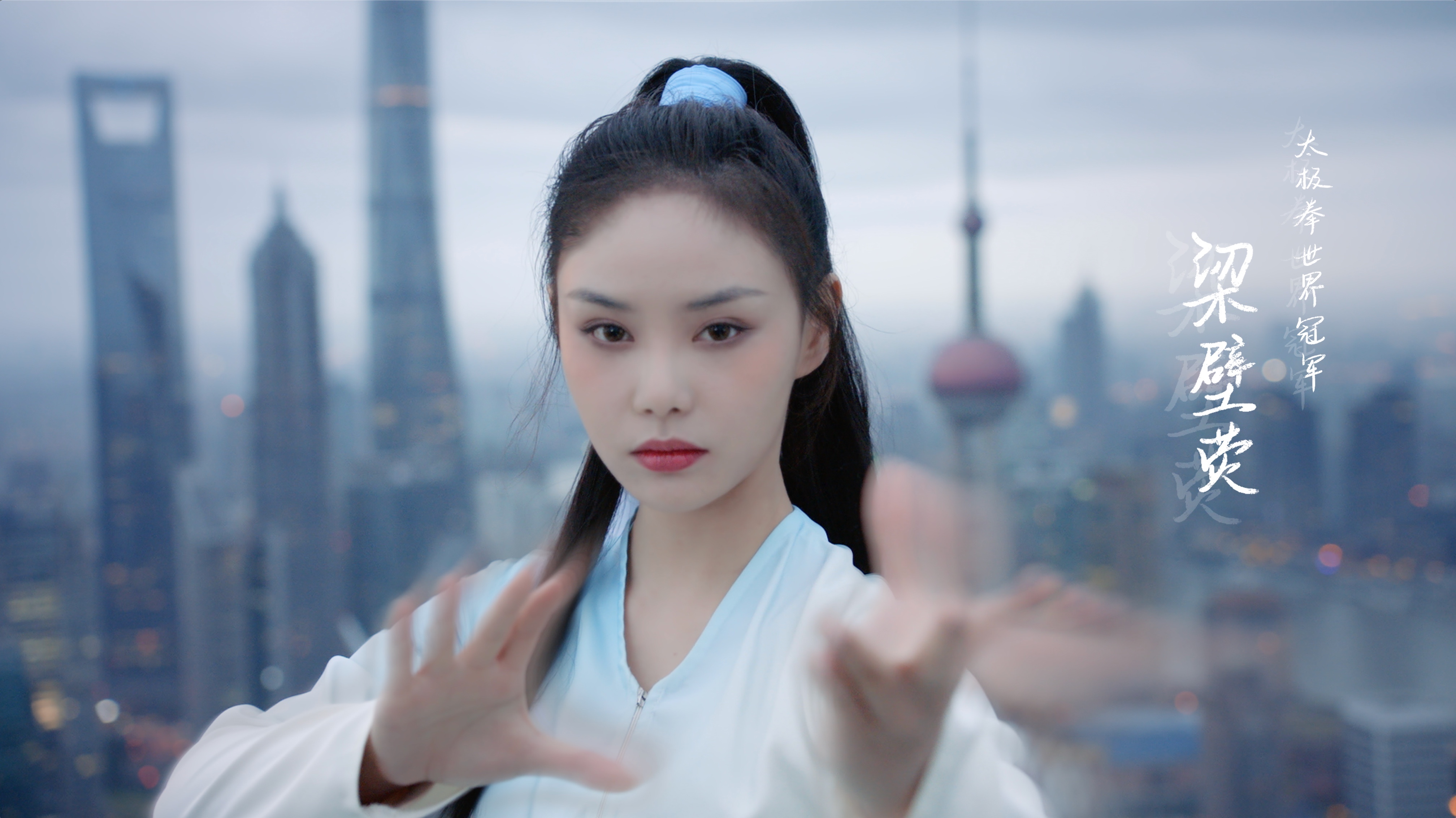 节目中,梁壁荧身穿仙气十足的武术服,在城市顶楼伴随着朝阳升起,一招一式相互呼应,以气发力以气接力,举手投足之间尽显青春本色,呼吸抬手间刚柔并济,开合有序,更显整个太极千变万化的神韵,让更多人领略到中国传统武术的魅力。