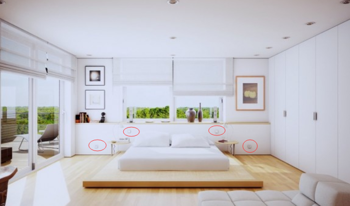 而床头必须预留插座和开关,那么一定要提前预留好,可以直接嵌入安装在矮柜上,方便插电和开关等,而在矮柜上方墙面,可以安装壁挂灯,作为床头灯,照明和装饰效果都好。