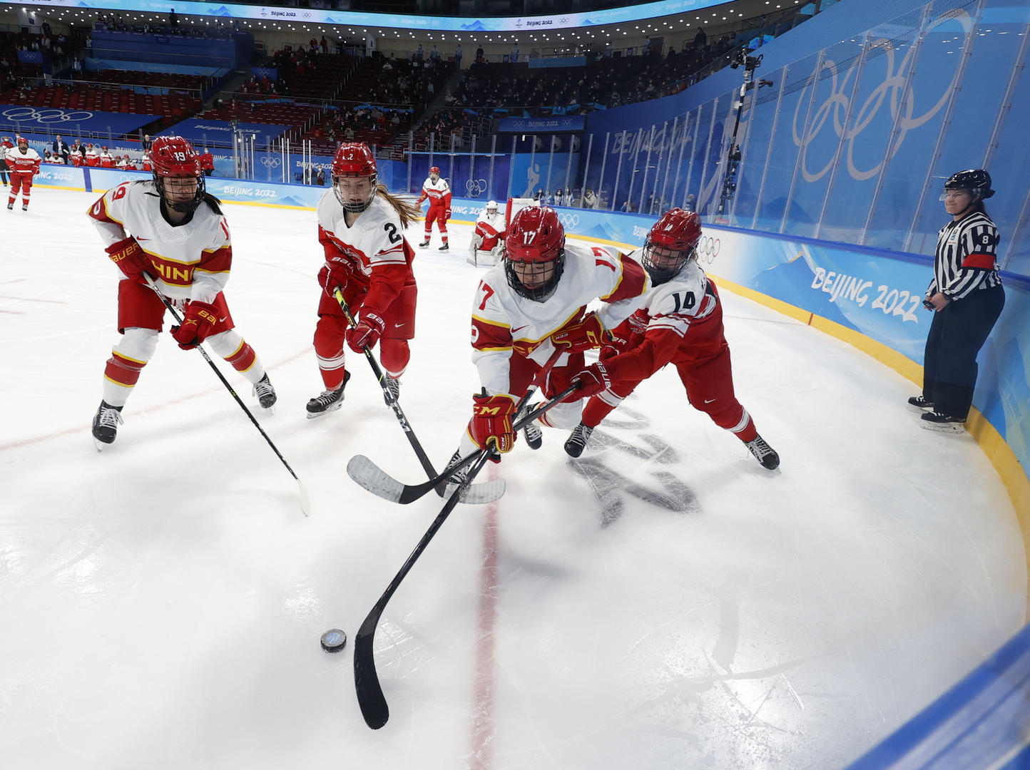 2月4日,2022北京冬奥会女子冰球小组赛B组,丹麦队VS中国队。图据IC Photo