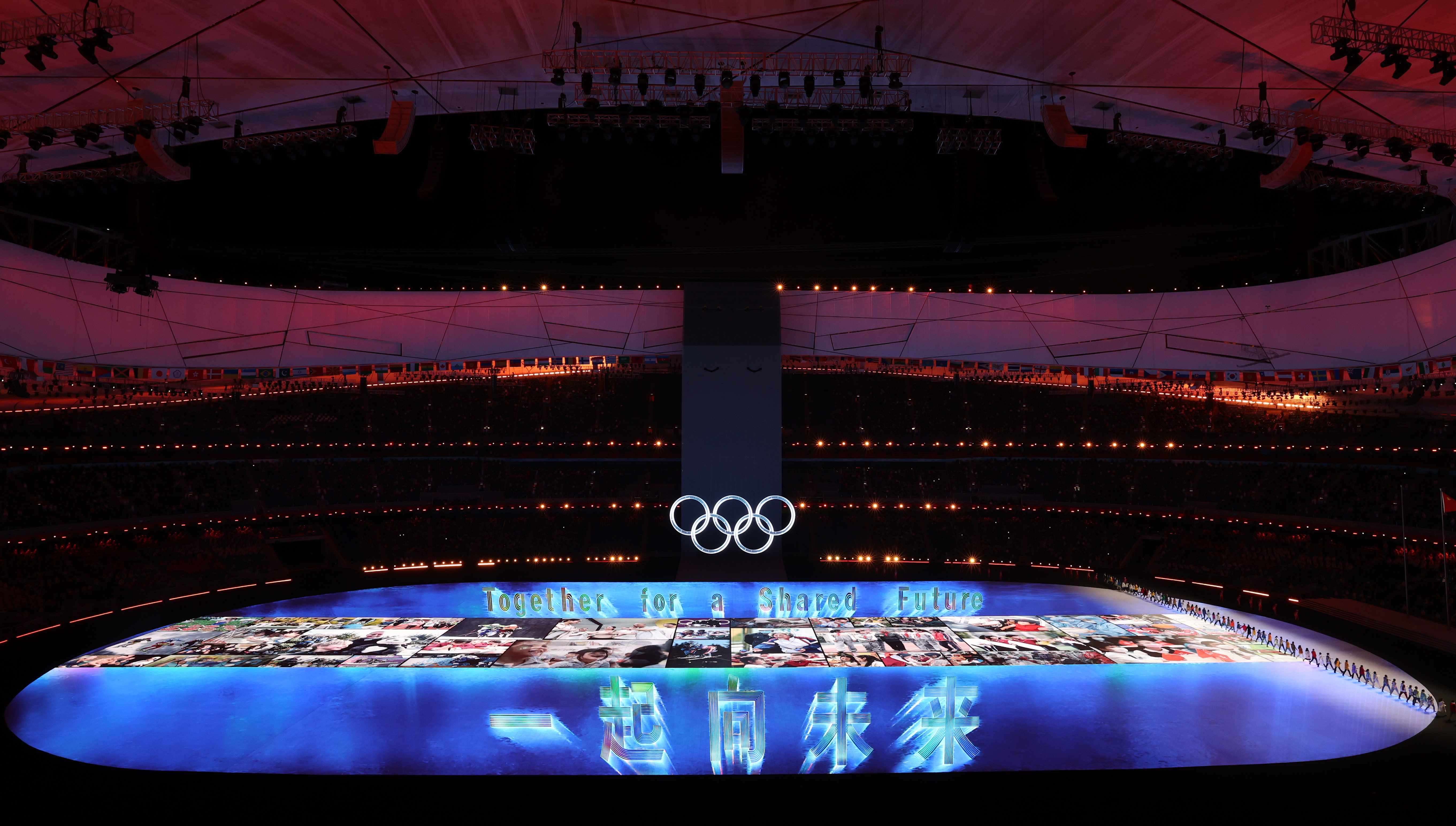 2月4日晚,第二十四届冬季奥林匹克运动会开幕式在北京国家体育场举行。这是开幕式上的“致敬人民”环节。新华社记者 李紫恒 摄