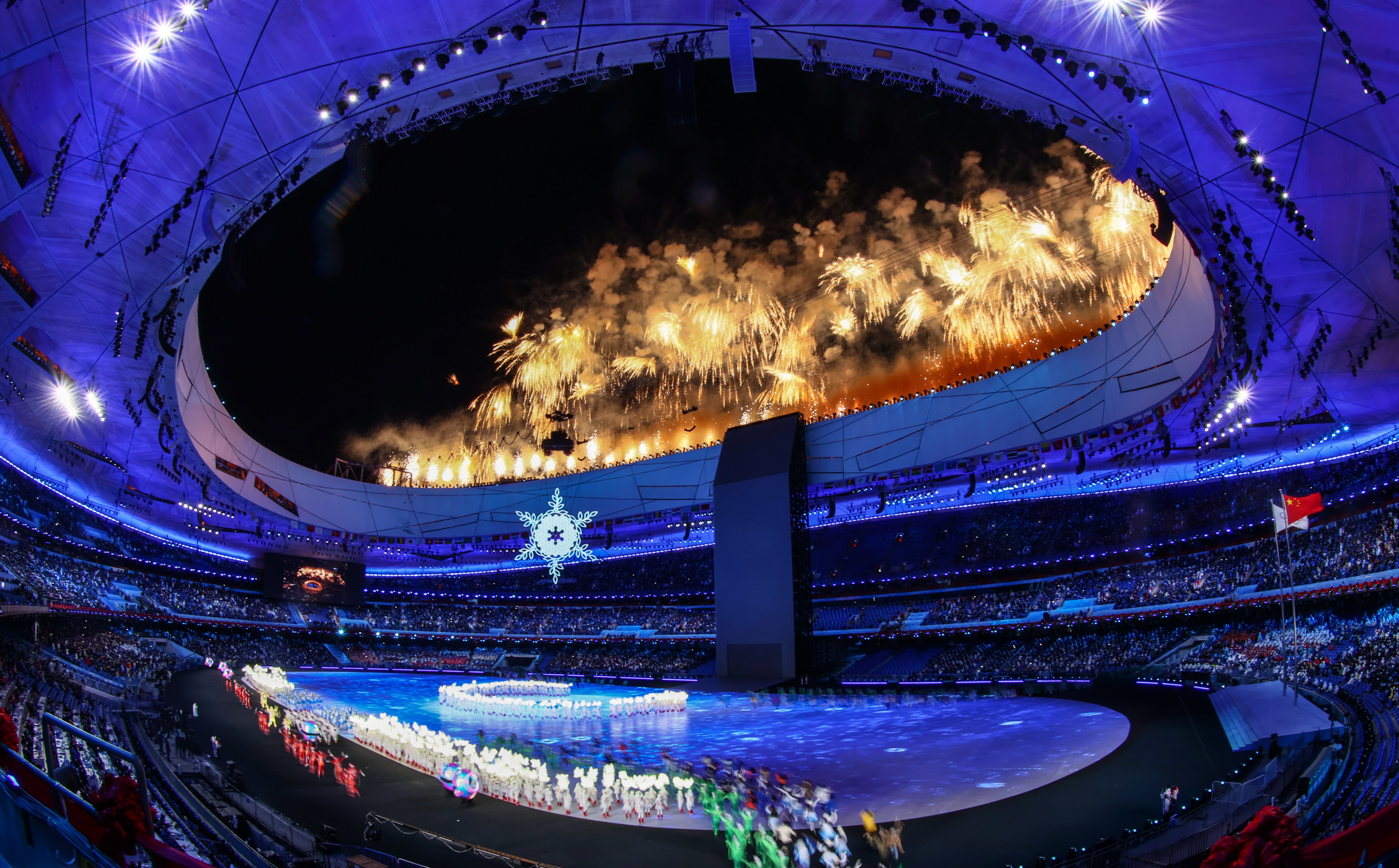 2月4日晚,第二十四届冬季奥林匹克运动会开幕式在北京国家体育场举行。这是主火炬和焰火表演。