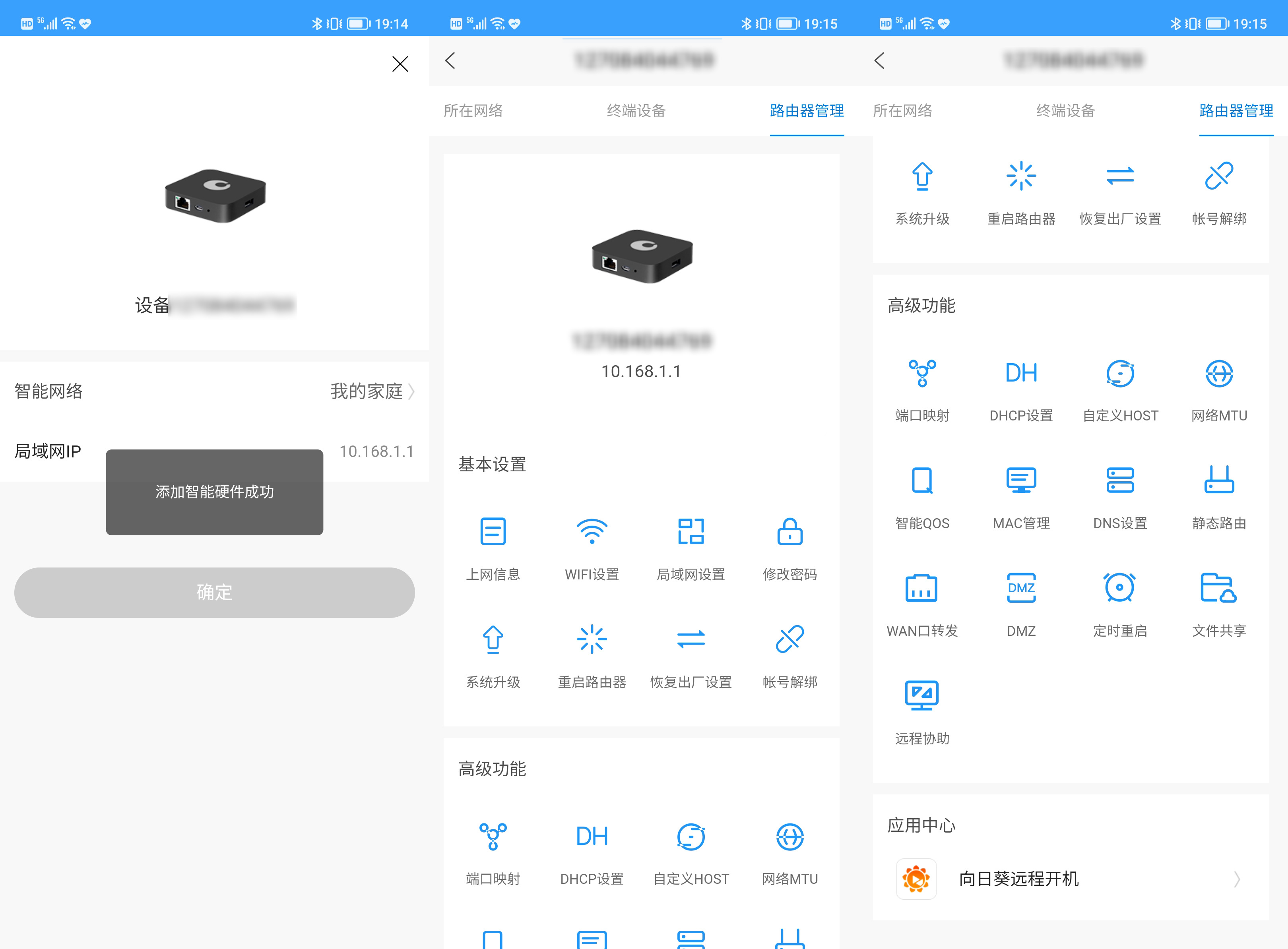 如果远程访问的话就要借助云管理功能了,电脑上不如手机上操作简单,起码手机APP上可以直接扫码绑定设备,而电脑上需要自己输入12位SN,强烈建议大家下载蒲公英管理APP来操作。