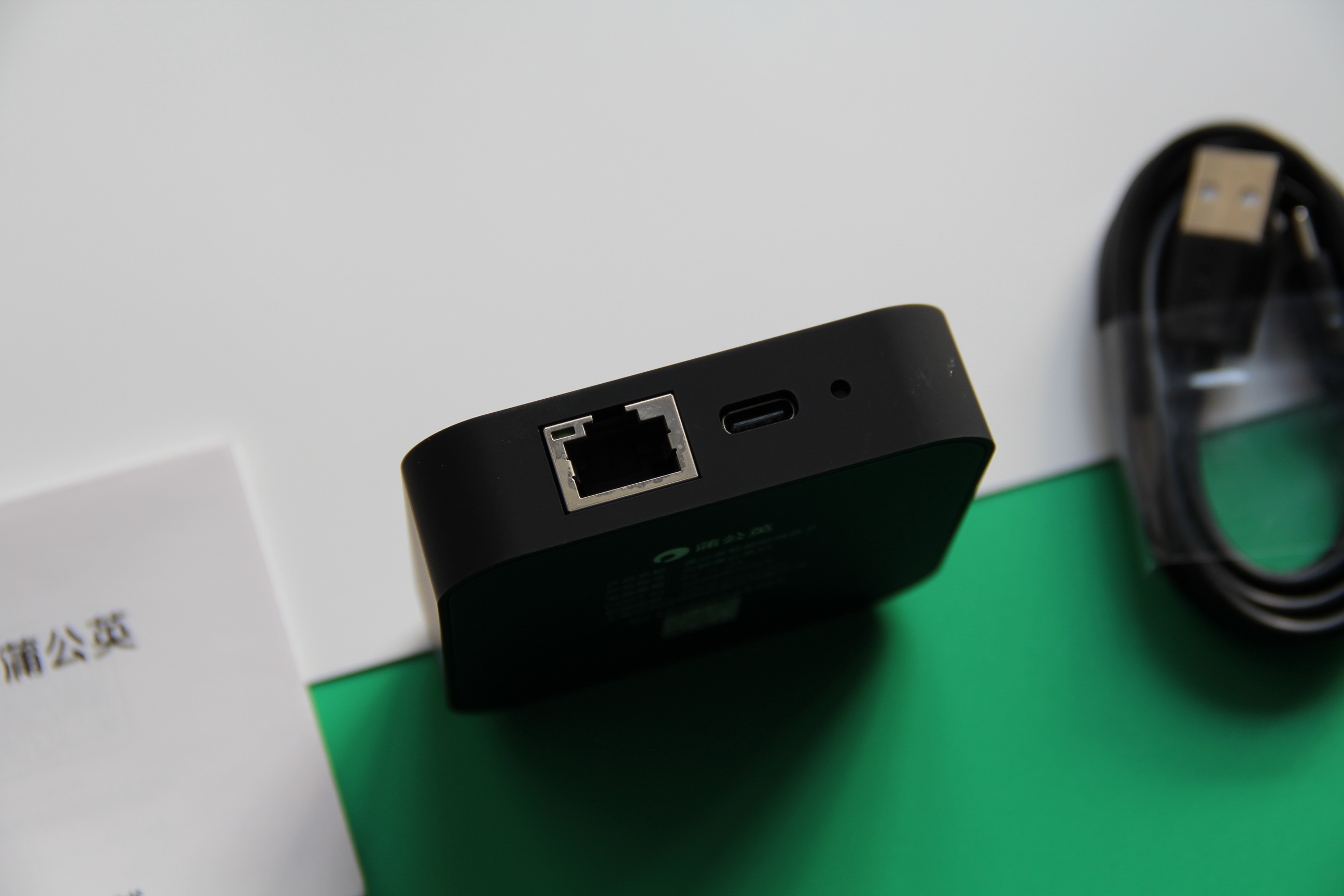蒲公英X1这款路由器的LAN接口有金属屏蔽,旁边则是Type-C供电线以及复位键,侧面有一个USB 2.0接口,用以扩展存储。