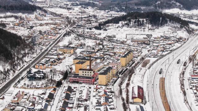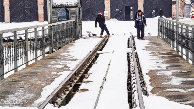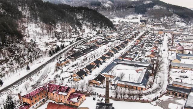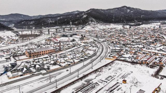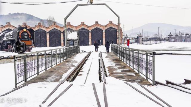 冬日整个小镇都被覆盖上厚厚的白雪,银装素裹,还有一个雪白的世界。横道河子镇最出名的莫属当时中东铁路最大规模的扇形机车库,还是世界上唯一的保存较为完整的扇形蒸汽机机车库,从上空俯瞰,建筑造型就像是一台拉开的手风琴。