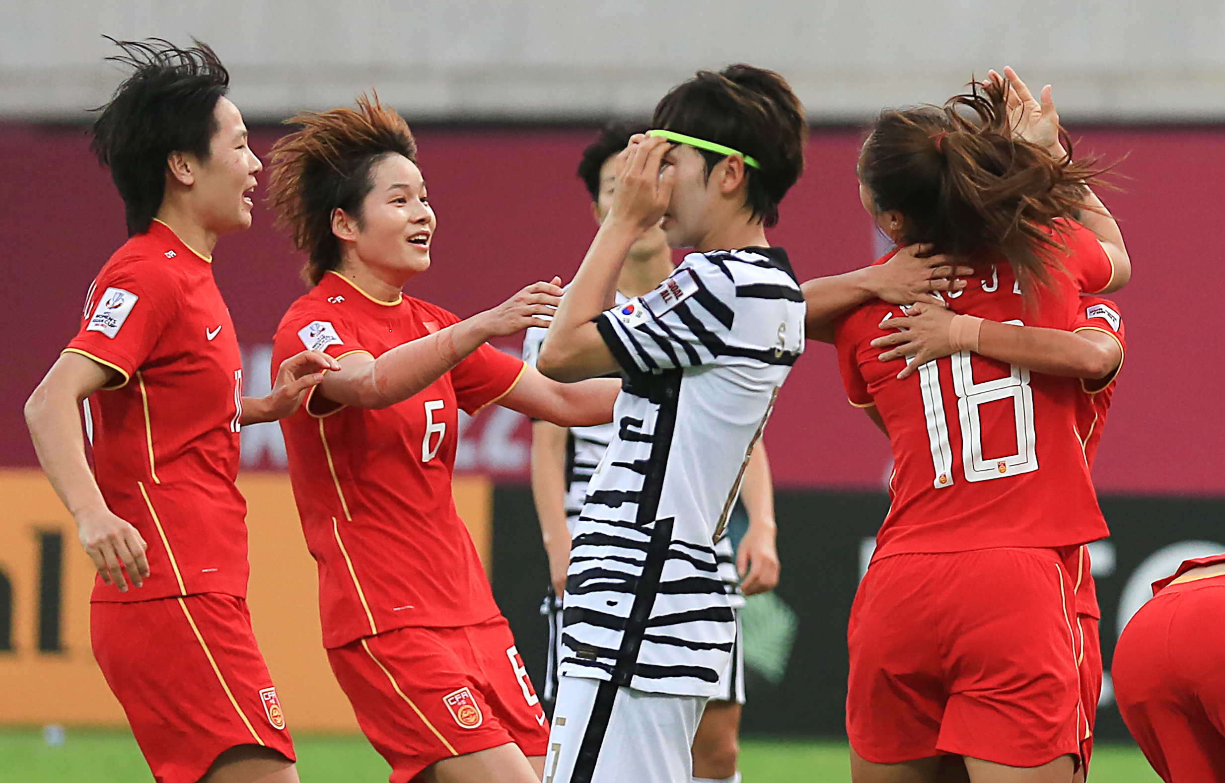 在当晚的决赛上半场,中国队0:2落后于韩国队,不少球迷在网上鼓励中国姑娘们,纷纷表示接受这次可能失利的结果。因为,此前和日本队的比赛,中国队拼到点球,体力已严重透支,而韩国队在半决赛中轻松击败菲律宾队,主力球员甚至在半场之后获得了休息时间。韩国队在此次比赛中明显是准备更充分、场上更占优势的一方。