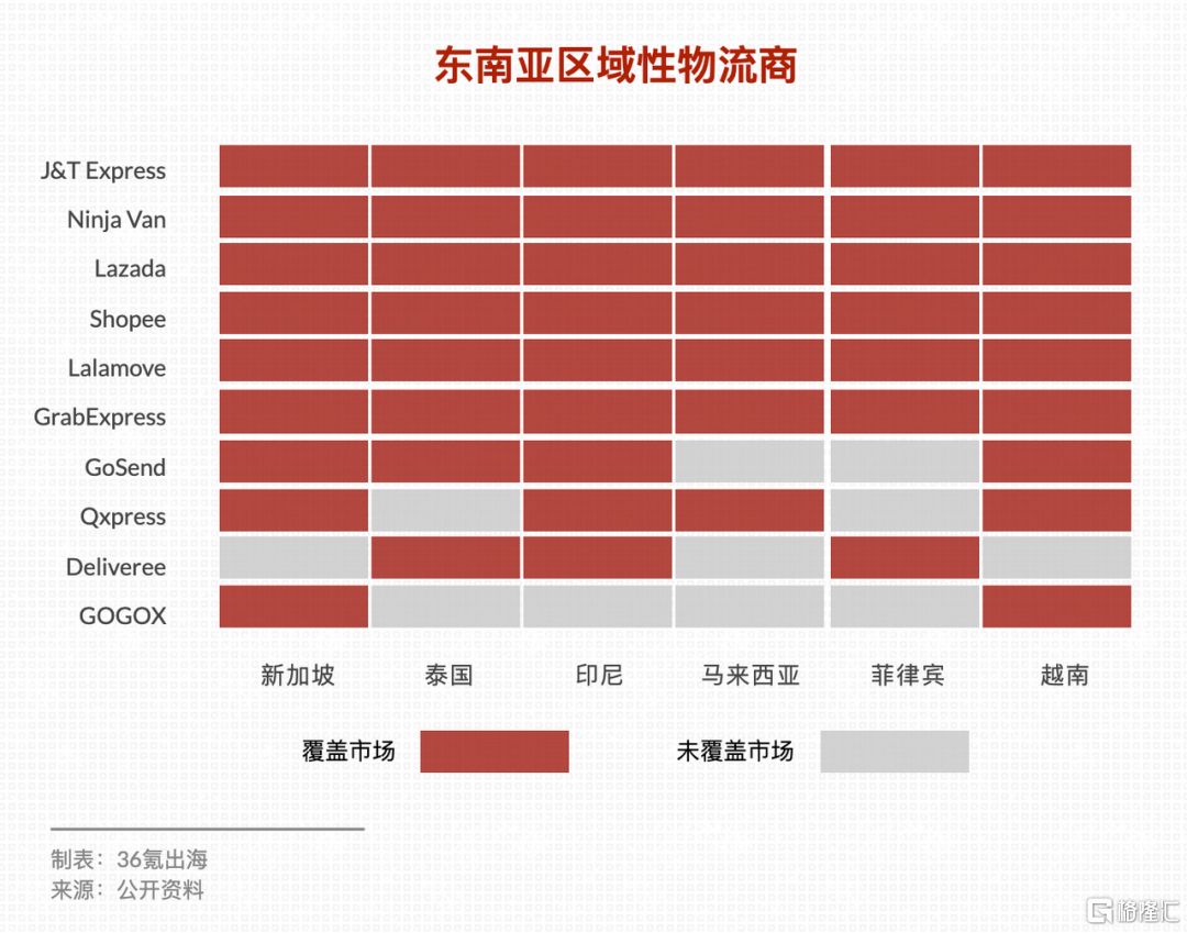然而,彼时东南亚区域性物流服务商已不在少数。以电商渗透率最高的东南亚六国来看,J&T Express、Lalamove、GrabExpress 也已实现了全覆盖,GoTo 旗下物流业务 GoSend、电商平台 Qoo10 旗下物流业务 Qxpress、印尼物流商 Deliveree、主营货运服务的 GOGOX 也在不断扩展配送网络边界。