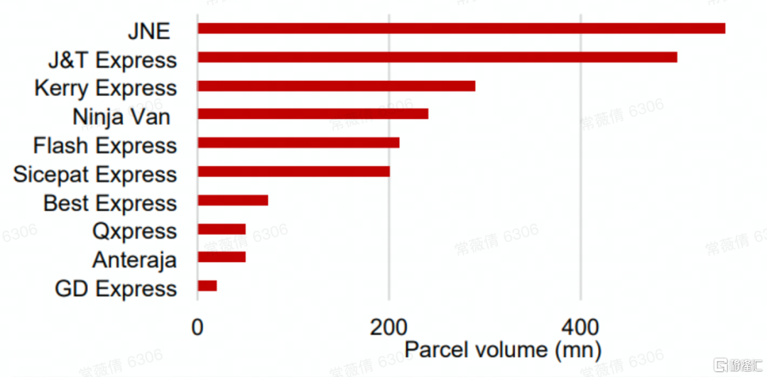 2020年东南亚第三方物流年包裹量排名 来源:China Renaissance *上图Ninja应排行第三