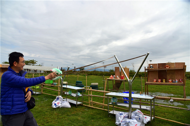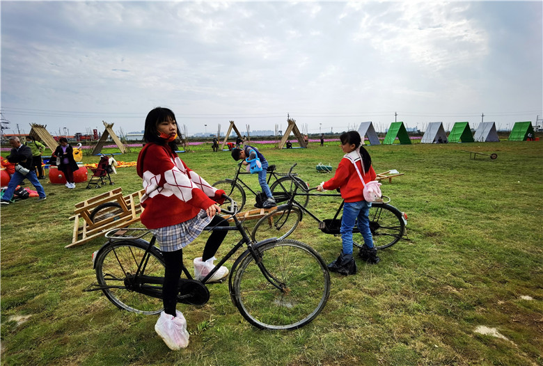 牧场大草地里,园区推出了众多怀旧与农耕体验项目:亲爹鸡公车、亲子轮胎车、担柴挑水、推磨踏碓摇风车、犁田耙地打辘轴、老式单车、推兔子,甚至还推出了上个世纪90年代前春节乡村最火爆的项目鞭炮炸牛粪。还有民俗体验项目舞龙舞狮舞春牛等。