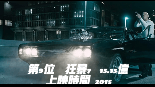 第9位:狂暴(速度与激情)7 Furious 7 票房:15.15亿美元 上映时间:2015