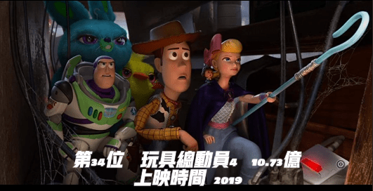 第34位:玩具总动员4 Toy Story 4 票房:10.73亿美元 上映时间:2019