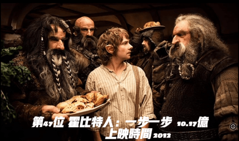 第47位:霍比特人:一步一步The Hobbit: An Unexpected Journey 票房:10.17亿美元
