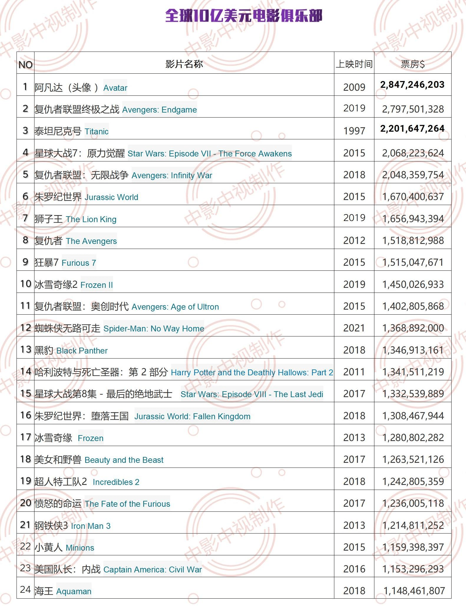 那边冬奥会热火朝天,这边多地还在管控中,那么看看电影对于只能猫在家的人来说也是不错的选择!《长津湖之水门桥》无疑是首选,但趁这个比较空闲的时间看看更多的大片也是很惬意的事!于是我们把全球电影史上票房在十亿美元以上的影片做了个排行,供观众看片参考!但遗憾的是在这个榜单中,9.03亿美元的《长津湖》也未能入榜,还差近1亿美元!