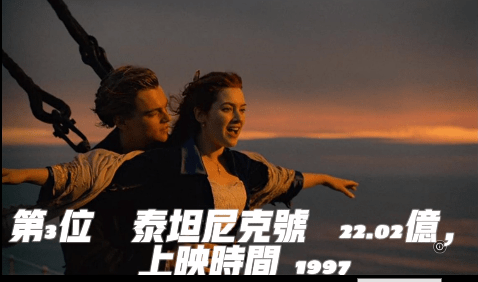 第3位:泰坦尼克号 Titanic 票房:22.02亿美元 上映时间:1997
