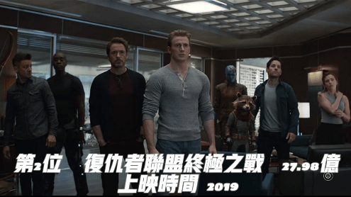 第2位:复仇者联盟终极之战Avengers: Endgame 票房:27.98亿美元 上映时间:2019