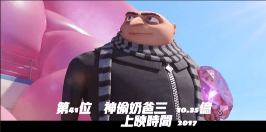 第41位:卑鄙的我3 (神偷奶爸3)Despicable Me3 票房:10.35亿美元 上映时间:2017