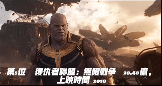 第5位:复仇者联盟:无限战争 Avengers: Infinity War 票房:20.48亿美元 上映时间:2018