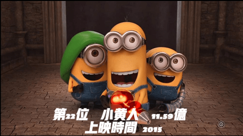 第22位:小黄人 Minions 票房:11.59亿美元 上映时间:2015