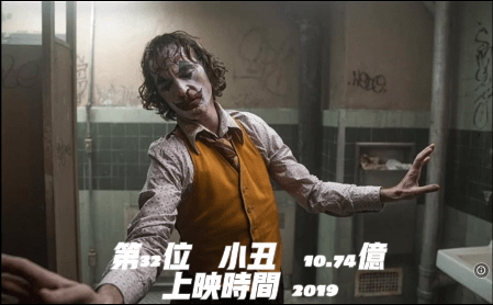 第31位:小丑 Joker 票房:10.74亿美元 上映时间:2019