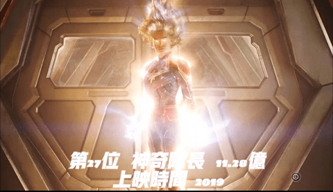 第27位:神奇队长 Captain Marvel 票房:11.28亿美元 上映时间:2019