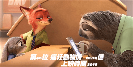 第46位:疯狂动物城 Zootopia 票房:10.24亿美元 上映时间:2016