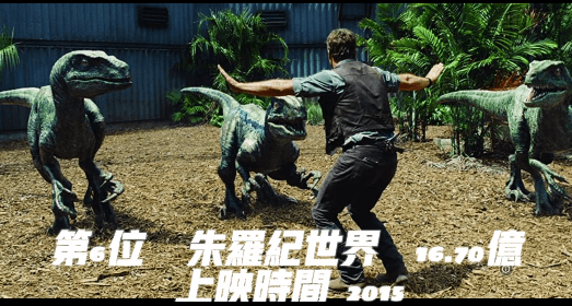 第6位:朱罗纪世界 Jurassic World 票房:16.70亿美元 上映时间:2015