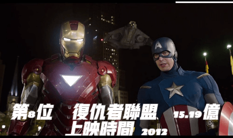 第8位:复仇者 The Avengers 票房:15.19亿美元 上映时间:2012
