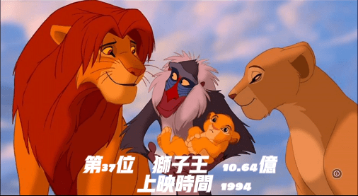 第37位:狮子王The Lion King 票房:10.64亿美元 上映时间:1994