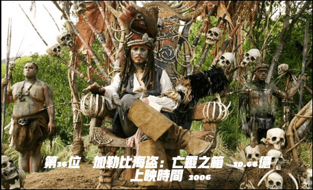 第36位:加勒比海盗:亡灵之箱 Pirates of the Caribbean: Dead Man's Chest