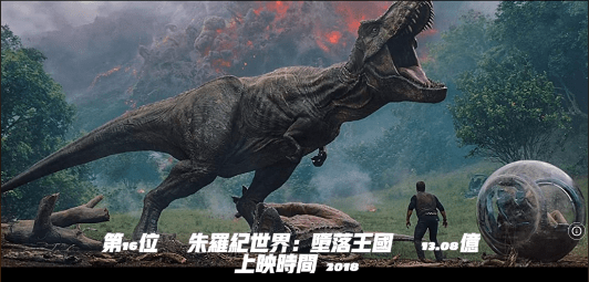 第16位:朱罗纪世界:堕落王国 Jurassic World: Fallen Kingdom 票房:13.08亿美元