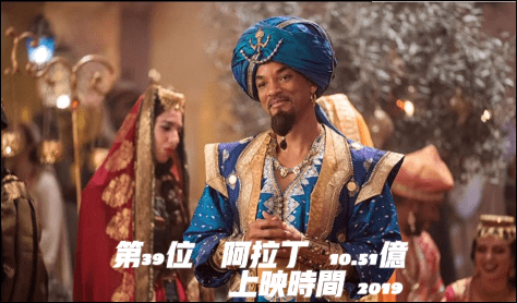 第39位:阿拉丁 Aladdin 票房:10.51亿美元 上映时间:2019
