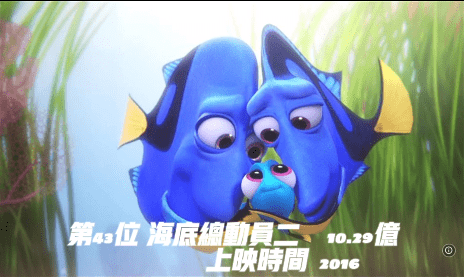 第43位:海底总动员2 Finding Dory 票房:10.29亿美元 上映时间:2016