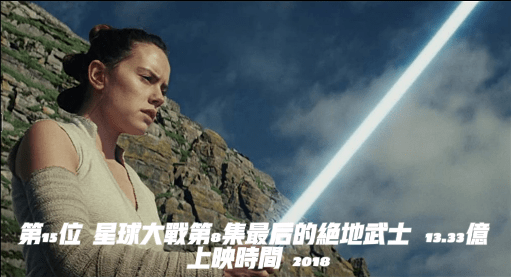 第15位:星球大战8-最后的绝地武士 Star Wars: Episode VIII - The Last Jedi