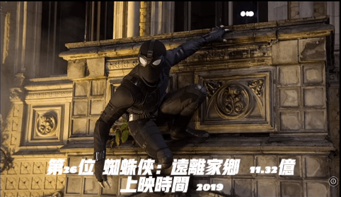 第26位:蜘蛛侠:远离家乡Spider-Man: Far from Home 票房:11.32亿美元 2019