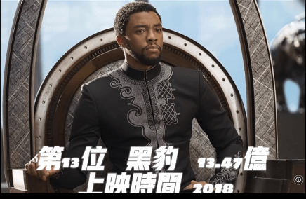 第13位:黑豹 Black Panther 票房:13.47亿美元 上映时间:2018