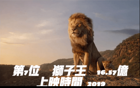 第7位:狮子王 The Lion King 票房:16.57亿美元 上映时间:2019