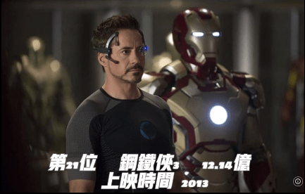 第21位:钢铁侠3 Iron Man 3 票房:12.14亿美元 上映时间:2013