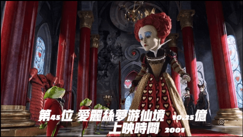 第45位:爱丽丝丝仙境 Alice in Wonderland 票房:10.25亿美元 上映时间:2001